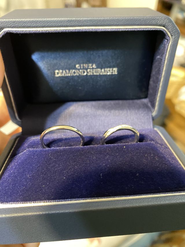 色々な指輪を見ていく中で、銀座ダイヤモンドシライシの指輪は着け心地が非常に良く、シンプルなものが多くて、私たちにとって、好みの指輪でした。