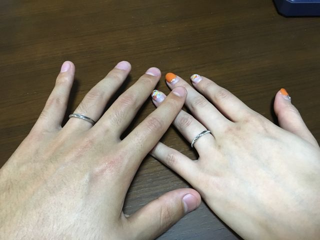 店員さんのイチオシだったことと指にはめたフォルムが気に入ったから!ダイヤの入り方も派手では無くかといって地味な感じでもなくシンプルで飽きのこないデザインだと思ったから(*゚▽゚*)旦那のデザインも素敵!