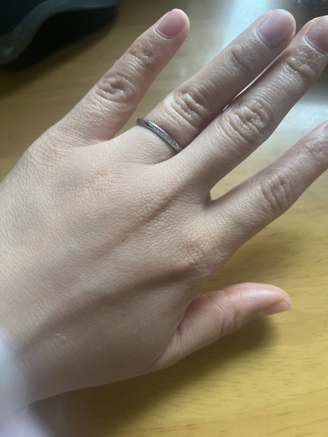 入っているダイヤの個数でお値段が変わるタイプで、私は真ん中の価格帯のものを選びました。一番ダイヤが少ないものが最初可愛く見えたのですが、つけてみると指が太いため詰まった印象になり、一番ダイヤが多いものだと間伸びした印象になったので、真ん中のを選びましたが、キラキラ指輪が光るたびに嬉しい気持ちになります。