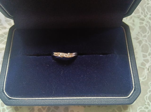 指輪のタイプをストレートにするかウェーブにするか迷いましたが、ウェーブに小さいダイヤが敷き詰められているこのデザインに惹かれました!