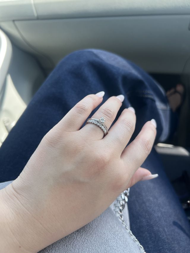 キラキラしたものが好きなのでダイヤモンドのハーフエタニティの結婚指輪にしました✨ダイヤモンドの煌めきが本当に綺麗で色々な種類のハーフエタニティを試着させてもらいましたが、最終的にレイデューにしました!