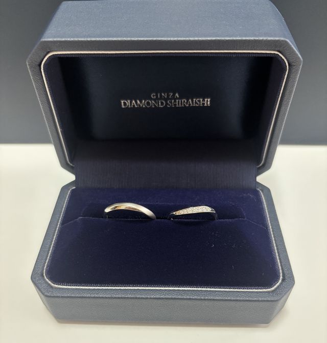 店内は広く、落ち着いた雰囲気がありました。飲み物とお菓子まで頂いて、ゆっくり自分たちにあった指輪を探すことができました。気になるデザインがあると持ってきていただき、スムーズに試着することができました。