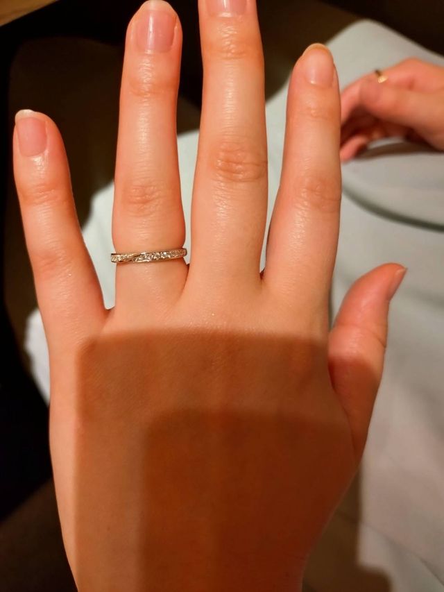 ・付けた瞬間から、かなり心踊らされました。ダイヤの輝きはとにかく綺麗。見た目が華やかですが派手すぎずとても上品。
