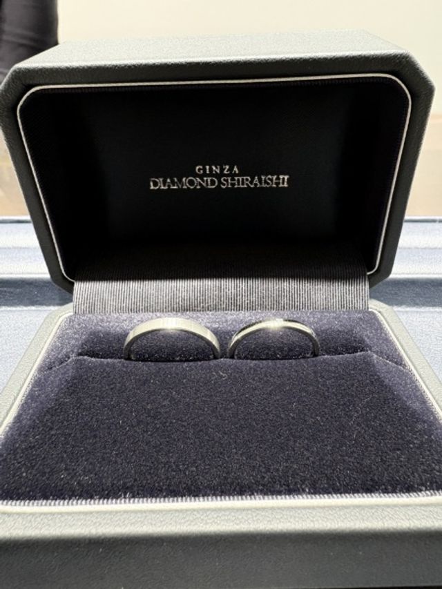 シンプルなデザインを探していて、どの店舗も理想な形はあるのですが、銀座ダイヤモンドシライシさんは太さの種類やツヤ消しなどのオプションも豊富です。
