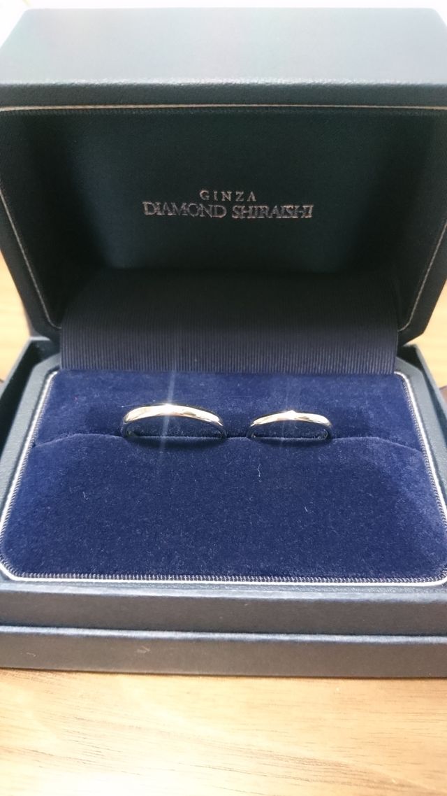 複数店舗で試着しましたが、銀座ダイヤモンドシライシはつけ心地が断然違いました。ひっかかりがなく、スッと入る感じに旦那さんも大満足なようです。婚約指輪は7号でしたが、結婚指輪は5号が入り、ビックリしました!