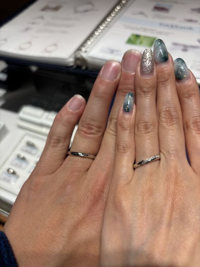 ダイヤモンドシライシさんで結婚指輪を買うのが夢で、今回好きなデザインがあったこともあり夢が叶いました。