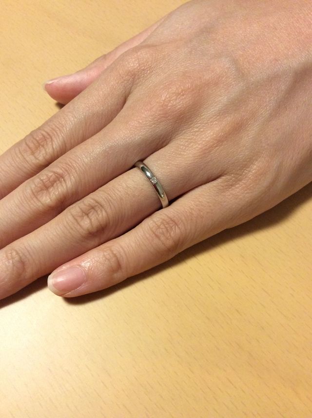 シンプルだが、デザインを好みで選択できたこと。さらに、思い描いていた形と質感、また一粒ダイヤを付けた感じが素敵だったので、この指輪に決めようと思いました。夫婦で付けた時の、一体感が凄く気に入りました。