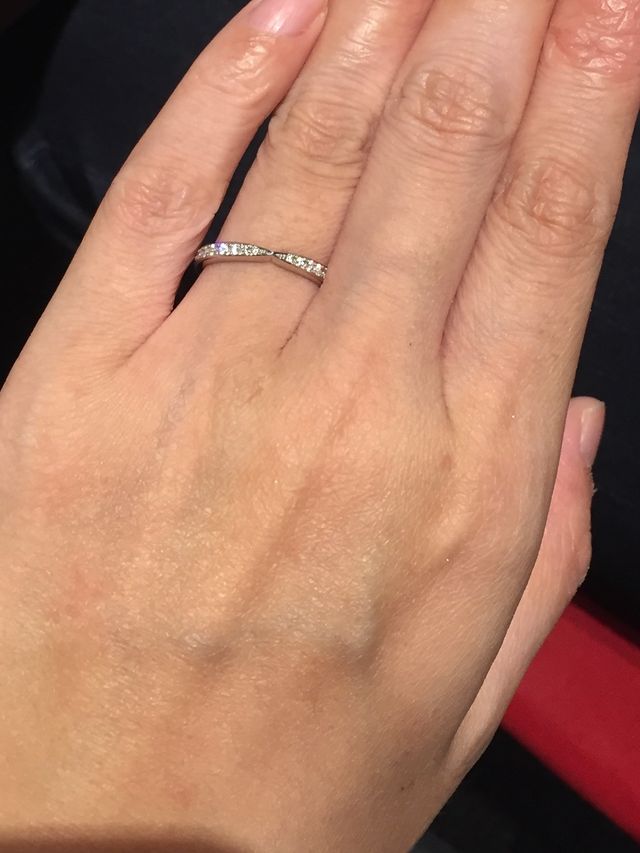 1つ1つの輝きが綺麗なダイヤモンドが表面にびっちりしきつめられておりすごく豪華な印象の指輪でした♩ダイヤモンドの輝きもすごく綺麗で専任のバイヤーが1つ1つ質の良いダイヤモンドを選定しているようです。