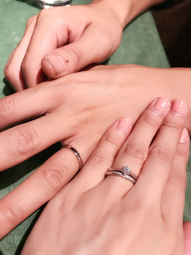 婚約指輪も同じ店舗で購入したので、スタッフの方も好みを分かってくださっていて購入までかなりスムーズでした。彼の指輪も指の形や太さをみてアドバイスしていただきました。2人とも大満足の指輪に出会うことができました!