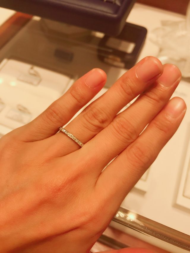 シンプルなデザインとハーフエタニティで迷いこちらを試着しました。