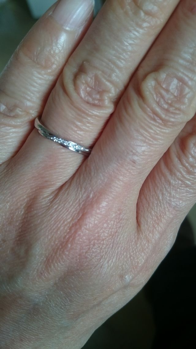 シンプルだけどカーブとダイヤが綺麗です。主人のものは同じデザイン、石無しで艶消しにしてもらいました。
