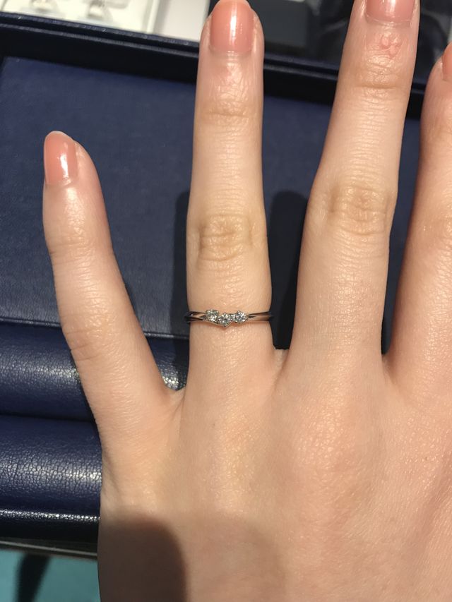 とにかくデザインが私の好みでした!!もともとダイヤがついていて、V字になっているデザインを探していましたがどこのブランドもしっくりくるものはなく、最後に行ったお店が銀座ダイヤモンドシライシでした。ここのお店はV字だけではなくU字も扱ったいて、V字よりも女性らしく指先が綺麗に見えるのでこちらに決定しました。