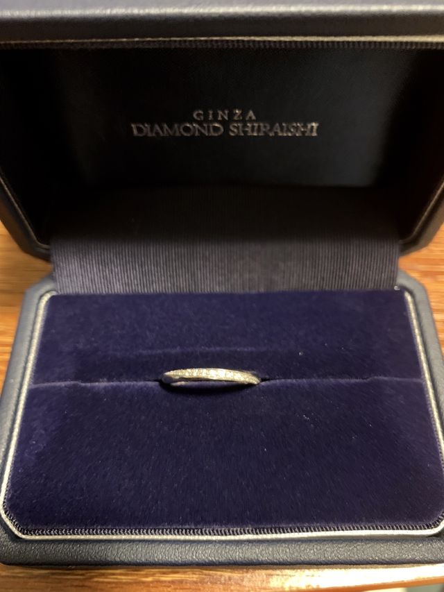 婚約指輪もこちらで購入させて頂いたため、重ねて着けたときに綺麗に見える指輪を探していました。何種類か試しに着けてみて、こちらのリングは斜めにダイヤモンドが入っていてとても綺麗だったので見に行ったその日に即決しました。