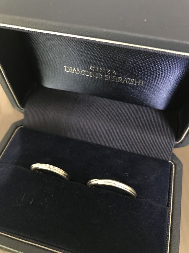 旦那の指輪はペアで、ウェーブの部分がつや消し加工になっているので、オシャレだと思いました。
