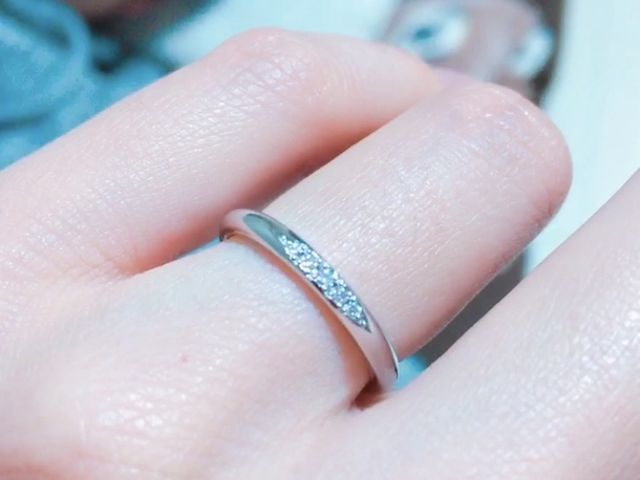 もともと普段の生活に支障のないシンプルなデザインを求めて伺いましたが、ダイヤの配置が美しくティアラのように可愛いデザインに惹かれ即決してしまいました。