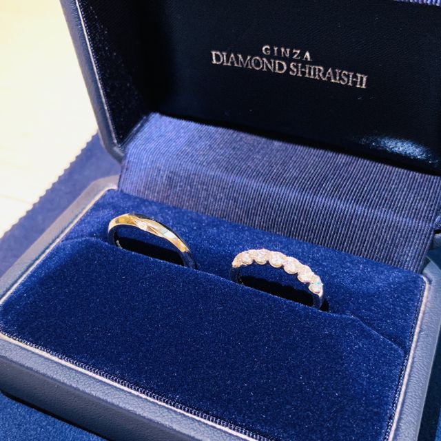 複数ブランドを見た後にたまたま来店しましたが、ダイヤモンドの輝きが非常に良かったのが印象に残っています。その割には価格帯もそこまで高すぎず、自由に選べたのも決め手です。女性用はエタニティリング、男性用はダイヤが1つ入ったデザインにしました。