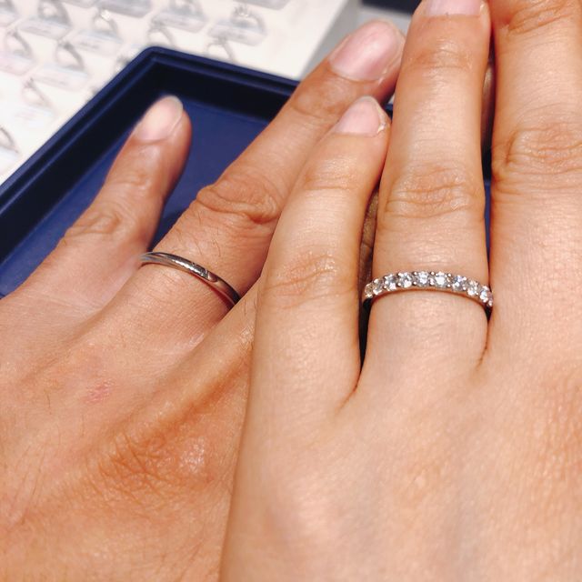 対応がすごく良かったのと種類が多い!選びきれないほどあるけど、店員さんも嫌な顔せず何個も持ってきて相談乗ってくれてるのが嬉しかったです。他のブランドよりダイヤモンドの質がいいと思います。そこが決め手でした。