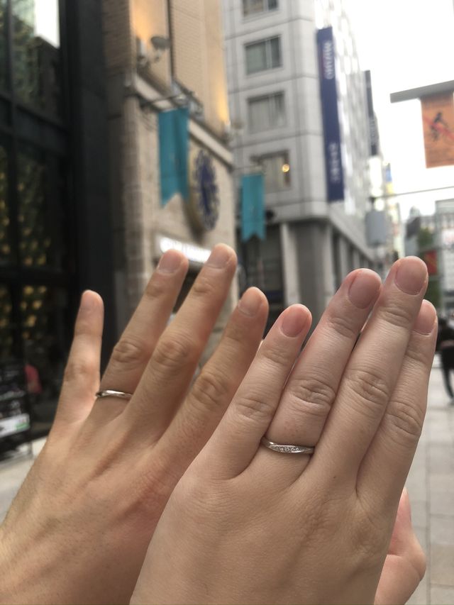 一番の決め手は、付け心地が良かったことです。毎日付けるものなので、隣の指に当たっても痛くないのが良かったです。指当たりが優しいので、他のブランドの指輪よりも小さいサイズでちょうどよかった。きれいなカーブで見た目が柔らかい印象なのも良かった。