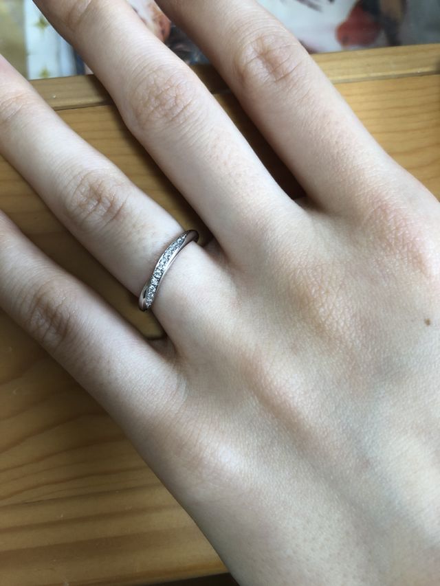 色々なデザインの指輪を見せていただき、スタッフの方ともたくさんお話をして決めました。さまざまな指輪を試着しその中で自分たちの中でしっくりくるのもを選びました。どの指輪のそれぞれの個性があって悩みましたが良いものにすることが出来ました。