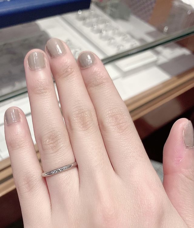 スタッフの方の対応も良く、希望の予算内での指輪を持ってきていただきました。婚約指輪と結婚指輪それぞれ試着し、重ね付けもとても合っていたので決めました。