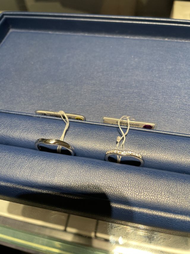 指輪の種類がたくさんあって、v字ラインで探していましたが、たくさんの指輪を試着させてもらい、自分のお気に入りの一本を探すことができるとおもいます。