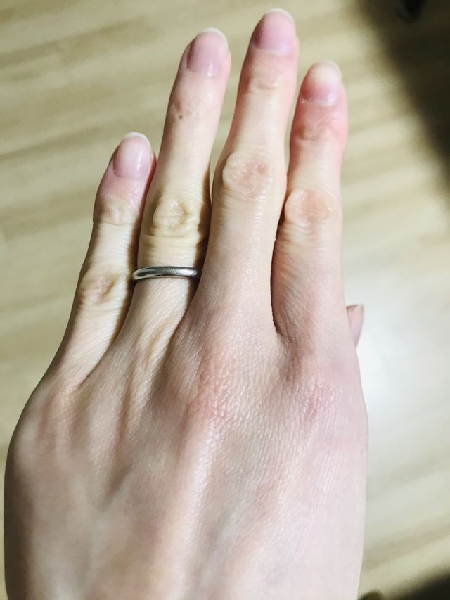 婚約指輪はダイヤモンドが5粒ほどついていたものなので結婚指輪はずっとつけてるものだしシンプルなものがよくてこちらに決めました。