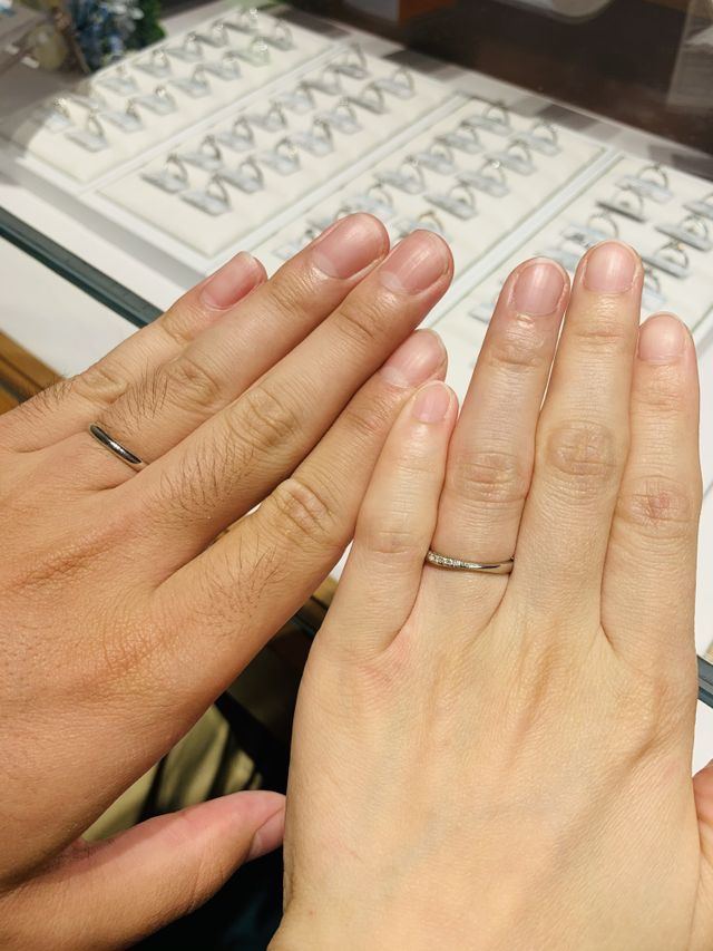 普段使いしやすく、シンプルで角度によって楽しめるところを選びました。またつけ心地も良く指も細く見えた気がします。ダイヤモンドもほどよくキラキラしていました。店員さんも親切だったのでここにしようと思いました。