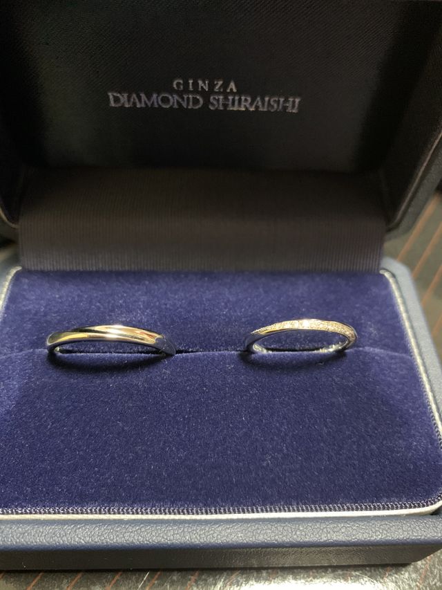 プラチナ素材で探しており、デザインも価格も気に入りました。一生付けるものなので、傷が付いても変質しにくく、それも味になるデザインが選べてとても満足してます。デザインは、どの角度から見てもダイヤモンドが美しく輝きます!
