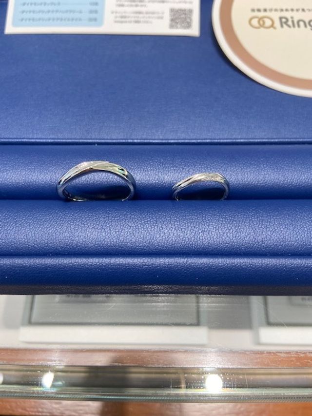 細めの指にはウェーブのかかった優しいデザインが合うとアドバイスをいただけて、そのようなデザインの種類が豊富で、色々試着できたので、納得できるものを選ぶことができました。華美過ぎず、地味過ぎないものが好みで、バッチリ当てはまりました。