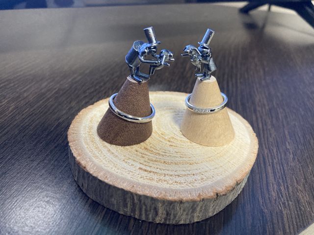ミル打ちや、ダイヤの数など自分たちで決められる指輪にしました!ペア感がでて、とても満足です!男女ともに付けやすい指輪でした!ダイヤモンドの石もあとから追加することもできる指輪だったので、記念日など大切な日に入れてもらおうとおもいます。