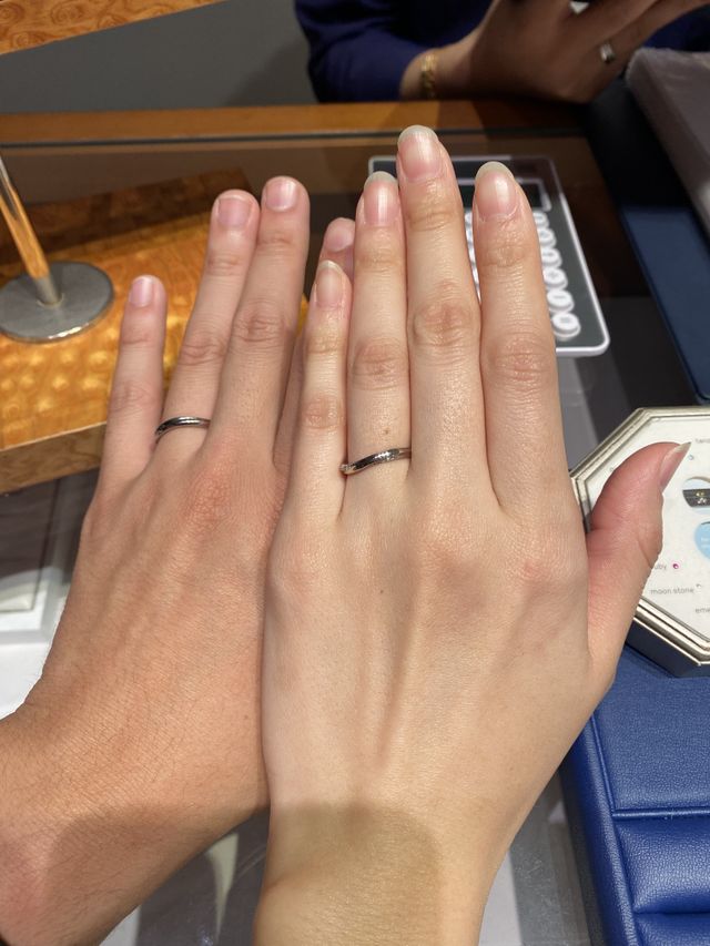 ウェーブ型ですが、他のお店にはない特徴を持ったデザインで、指輪をはめたときに指馴染みがあり、何より私たちのイメージに合った、そして私たちらしいデザインだと一眼見て思ったから。太さや厚み全てにおいてとてもちょうど良かったため。