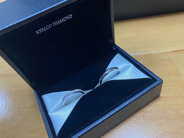 お互い指先を使う仕事をしてるので仕事中など外さないといけないことが多いのでつけはずしのしやすい指輪というのをメインに考えていました!!あまり細い指輪じゃなくて少し太めの指輪がいいというのも全て叶えてくれた指輪でした!