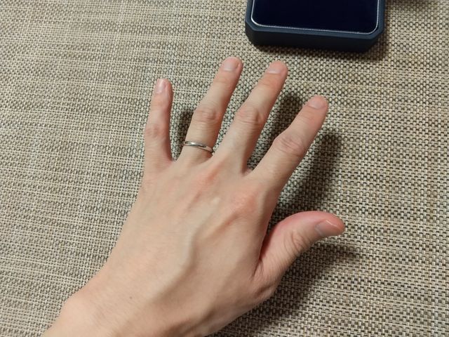シンプルなデザインでつけ心地が良い指輪を探していました。3件見て回ってこちらの指輪が一番希望に近かったので購入を決めました。店員さんが親切に対応してくれたので、アフターサービスも信頼できて安心して選ぶことができました。