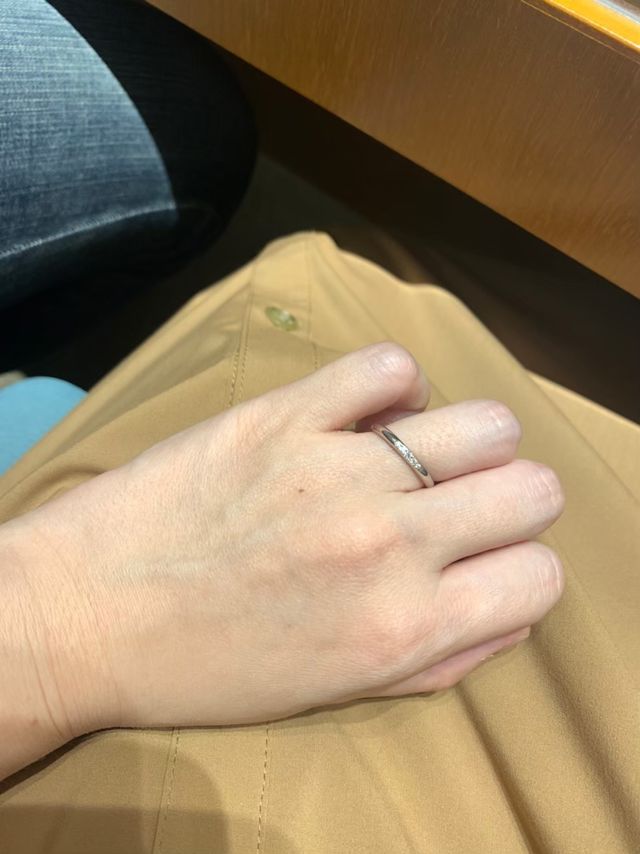 指輪も華奢なスタイルで探しており、シンプルで綺麗めながらもダイヤモンドが綺麗に輝き手先が綺麗に見えるものが多かったです。