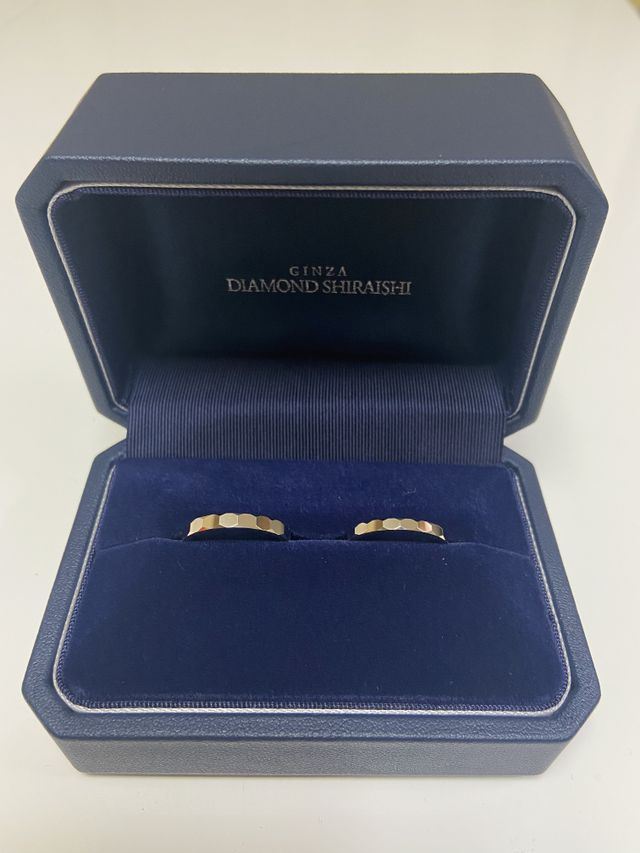 欲しかったデザインを色々と探していたところ、銀座ダイヤモンドシライシさんで見つかりました。同じようなデザインが他のブランドでもあったのですが、銀座ダイヤモンドシライシさんのみのハニーイエローゴールドという色味がすごく素敵で気に入りました。