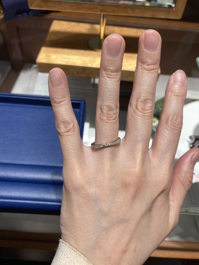 対応してくださった女性のスタッフさんはとても経験豊かな方で、私たちそれぞれが気に入りそうなデザインの指輪を次々と探し出してきてくださいました。そのスタッフさんのおかげで短時間でたくさんの指輪を試着できました。