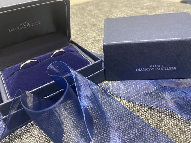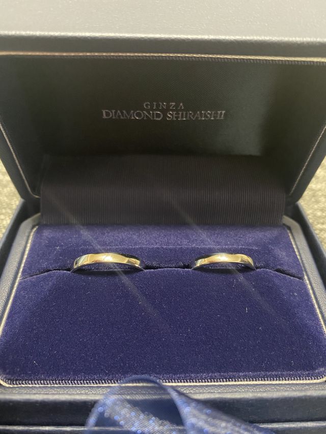 婚約指輪で銀座ダイヤモンドシライシさんの指輪をいただいて他のブランドさんの結婚指輪も見に行ったのですが、やっぱり婚約指輪と重ね付けした時にピタッ!とハマるものがよかったのと、プラチナのシンプルなもの、肌馴染みがいいものを希望していて銀座ダイヤモンドシライシに決定しました。