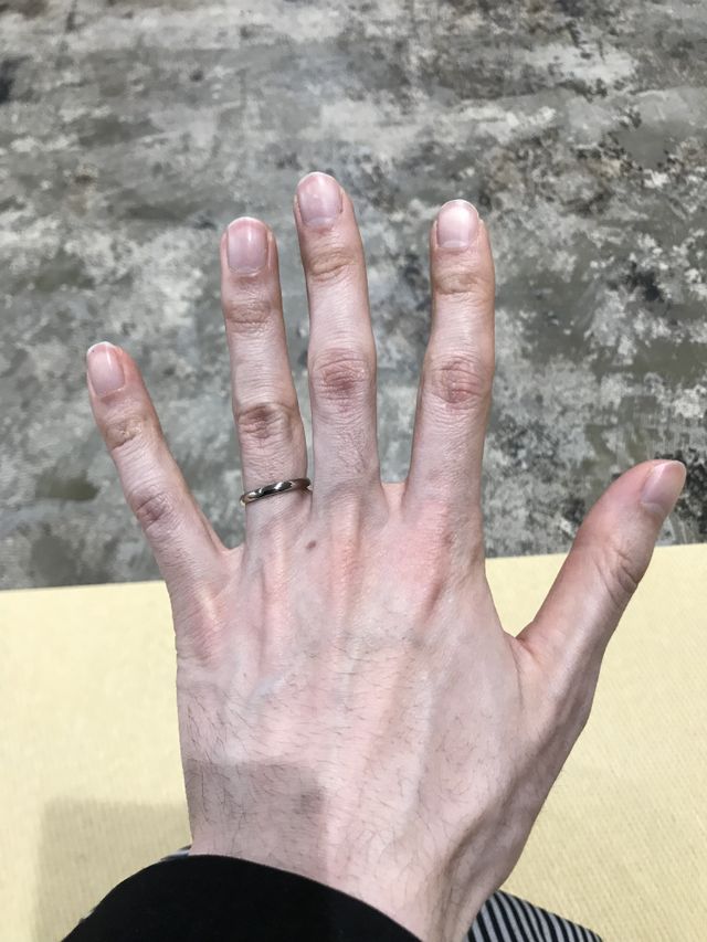 シンプルなデザインでつけていても違和感のないものがよかったのでこのブランドにきめました。これまでの人生で色々な方の結婚指輪を見せていただきましたが、わたし自身の中では、そのイメージに一番近いものだと思います。