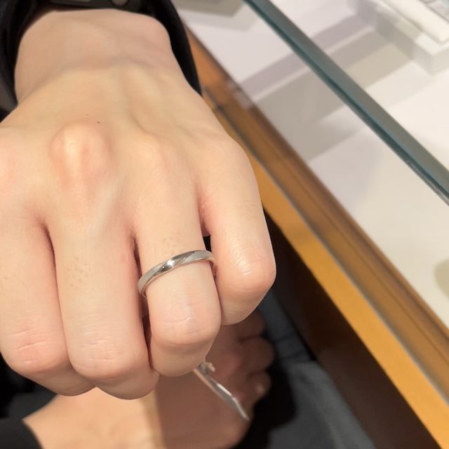 最初は付け心地の良いものと考えていましたが、つけているうちに付け心地にプラスしてデザインもなんとなく決まってきたところこちらに出会いました。マット加工ができるとのこと、プラスでダイヤを一石つけられるとのことでこちらに決まりました。
