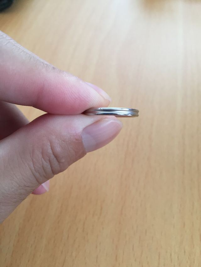 実際に試着してシンプルで日常生活に支障をきたさない物を選びました。指輪の幅が太すぎず細すぎず装着感が自然な事を重視し、光沢が全面にあるのが好みではなかったので、真ん中にマットの処理をしてもらいました。