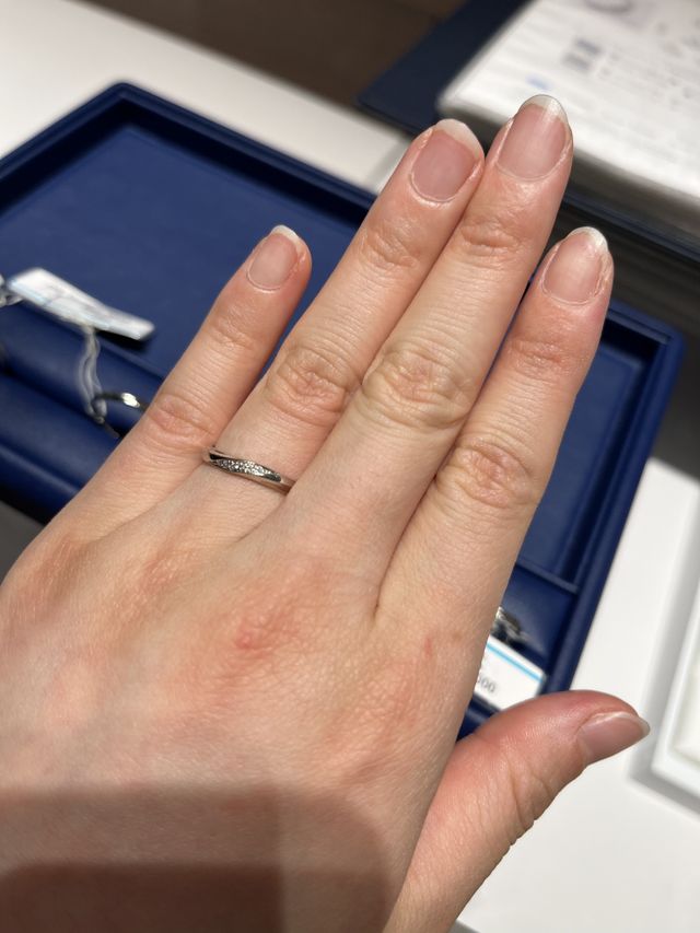 指輪のデザインが豊富で、自分達の指に合った形でダイヤモンドの数もちょうど良く、2人に合うデザインの指輪が見つかったから。