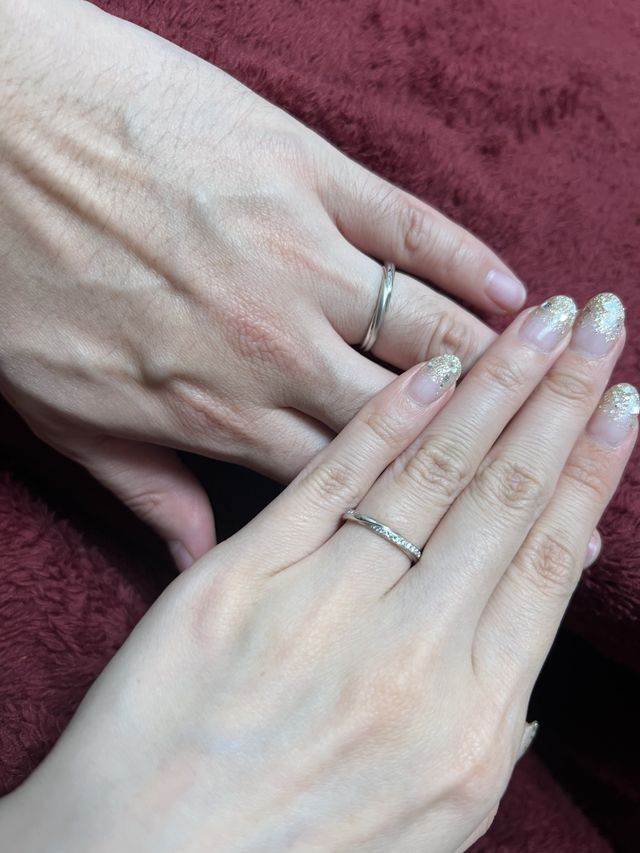 どの角度から見ても、ダイヤのキラキラがみえるのでとてもよかったです。それでも派手すぎず、今後年齢を重ねてもきっと指に映える素敵なデザインです。人と被ることのなさそうなウェーブのあるだったので気に入りました。