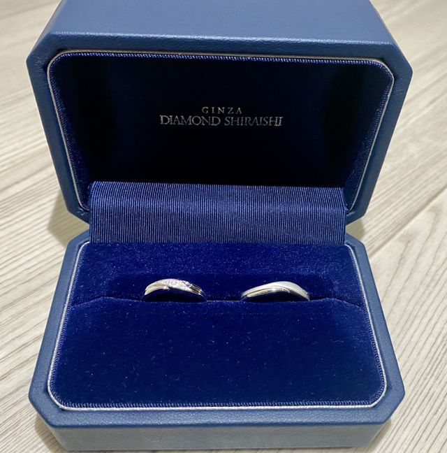 1番の決め手は指輪のデザインがとても好みでした。あまりキラキラしているのは希望していなく、ダイヤが埋め込みされている指輪が欲しいと考えておりました。色々見ていくうちにウェーブ感のある形が素敵だなと感じ購入に至りました。