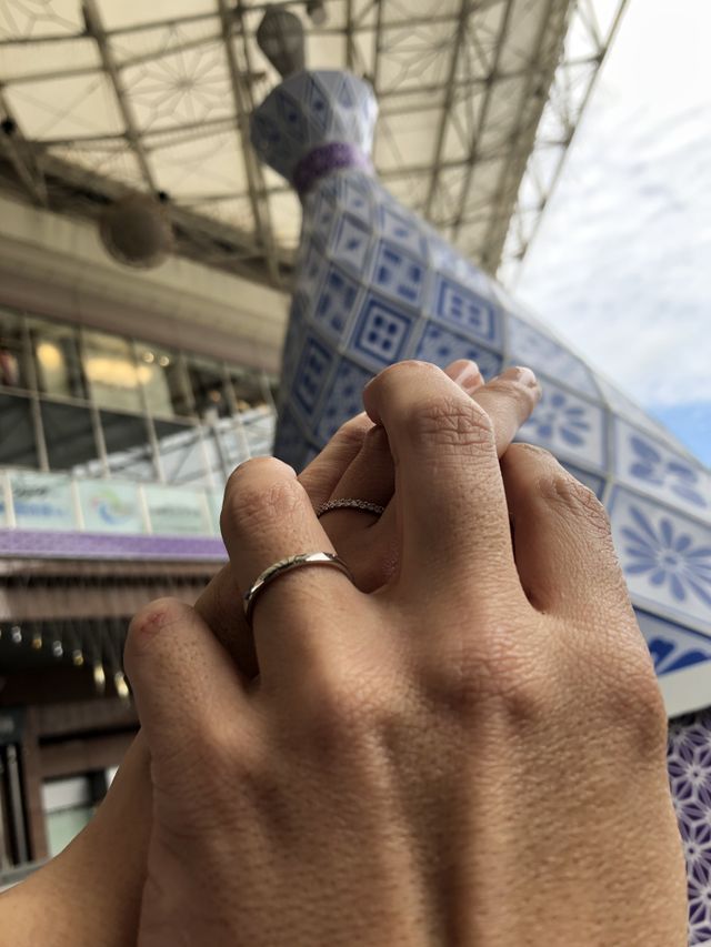 おかげさまで、実際に受け取り、夫婦共に日常生活の中で、ふと指輪に視線が向き、互いにそれぞれ想いを待ち微笑みながら探しています。