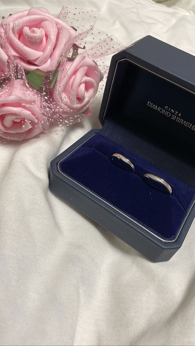 最初にはめた時のダイヤモンドの輝きがとても感動した。自分の指にフィットして馴染んだ。新郎の指輪もたくさんの種類があり、2人の好みを探していくのが楽しかった。いくつになってもときめく指輪を探しており気に入りました。