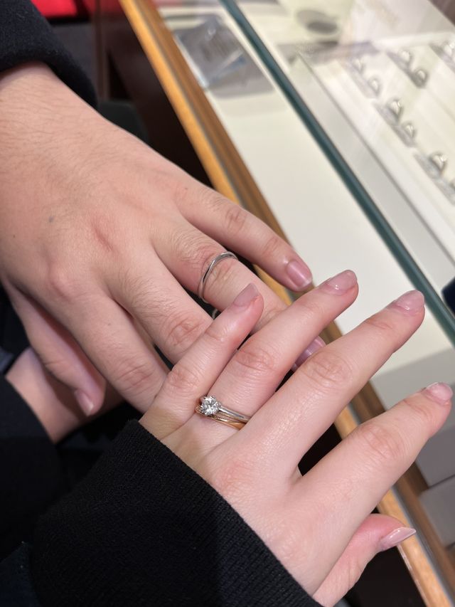 種類がとにかく豊富でたくさん悩みました。指輪自体もプラチナやゴールド、ピンクゴールドもあり、ダイヤの数も選べたり、、、。でも、彼とお揃いにできるようにカスタムして「私たちだけの指輪」を選ぶにはピッタリだと思います。アフターサービスも心配ないようでした。