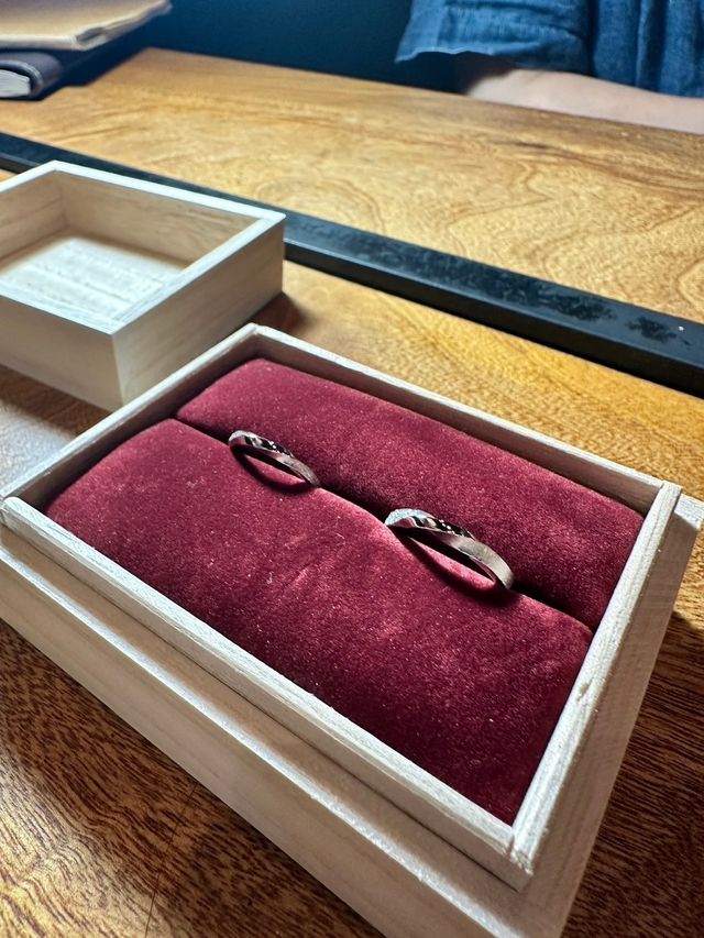 指輪の試着に行った際には、磨く前の指輪の姿を見ることができて、貴重な思い出になりました。今後の工程を丁寧に説明してくださり、出来上がるのを楽しみに待つことができました。