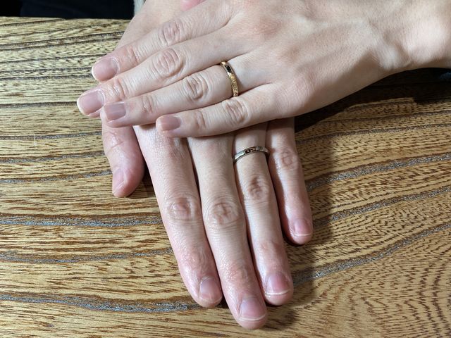 綺麗すぎないシンプルなデザインが好みな二人で結婚指輪を探している中、