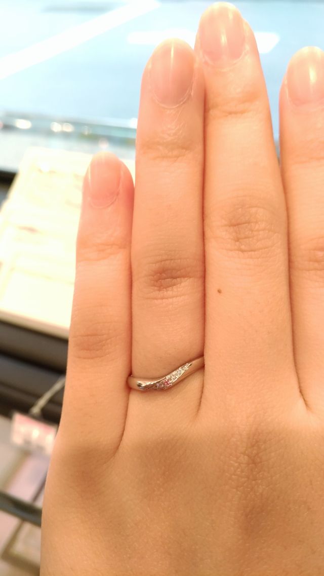 白ダイヤ5つのデザインだったのですが、そのうちの1石をピンクダイヤモンドに変更してもらいました。(ちなみに約2万円の追加料金がかかります。)