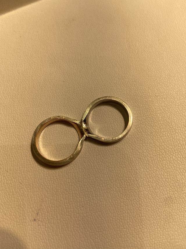 さまざまな金属板から三種類選び、自分たちだけの指輪を作るのはまたとない経験でしたし、大好きなピンクゴールドも織り交ぜることができたので満足です。